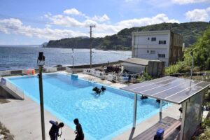 稲取マリンスポーツセンターは、ダイビングスクールマレア池袋から約3時間、静岡県東伊豆町稲取に位置するダイビング施設です。目の前に海が広がり、伊豆唯一の屋外温水プールを完備。初心者から上級者まで幅広いダイバーがトレーニングを行っています。