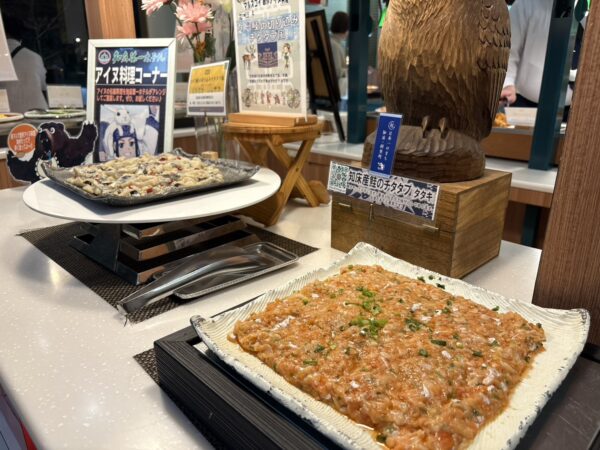 ゴールデンカムイ好き必見のアイヌ料理やいくらかけ放題! カウンター提供のステーキにお寿司に天ぷらに♡ デザートも大充実でした~~~♡ 書いてておなかすいてきた・・・ 二日目からはダイビングスタート!!!