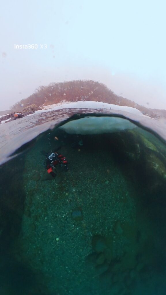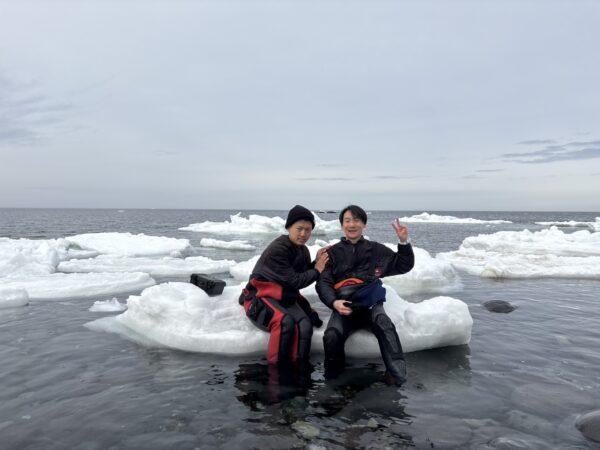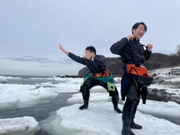 今回は流氷ダイビング初チャレンジの方がほとんど! チェックダイブも丁寧に実施していきます♪ 水温は2~-2℃🥶 慣れない装備や低水温に徐々に徐々に慣れていきましょう!