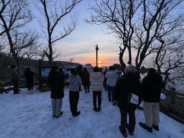 ごはんまでの腹ごなしに夕日を見て、初日の観光は終了! 四日間お世話になるホテルは知床第一ホテル⛄