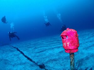 水深20mほどのところに水中ポストがあって、実際に手紙を出すことが出来るんですよ~(/・ω・)/