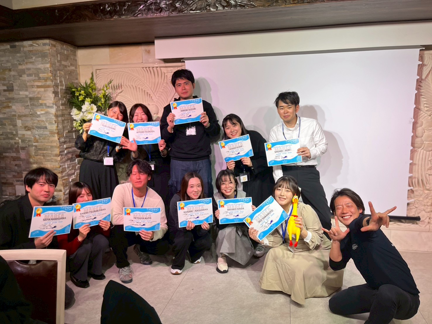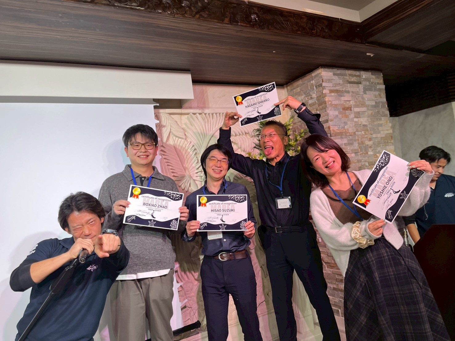 そして今回の親睦会ではフリーダイバー表彰、マスタースクーバダイバー表彰、ダイブマスター表彰、インストラクター表彰がありました!