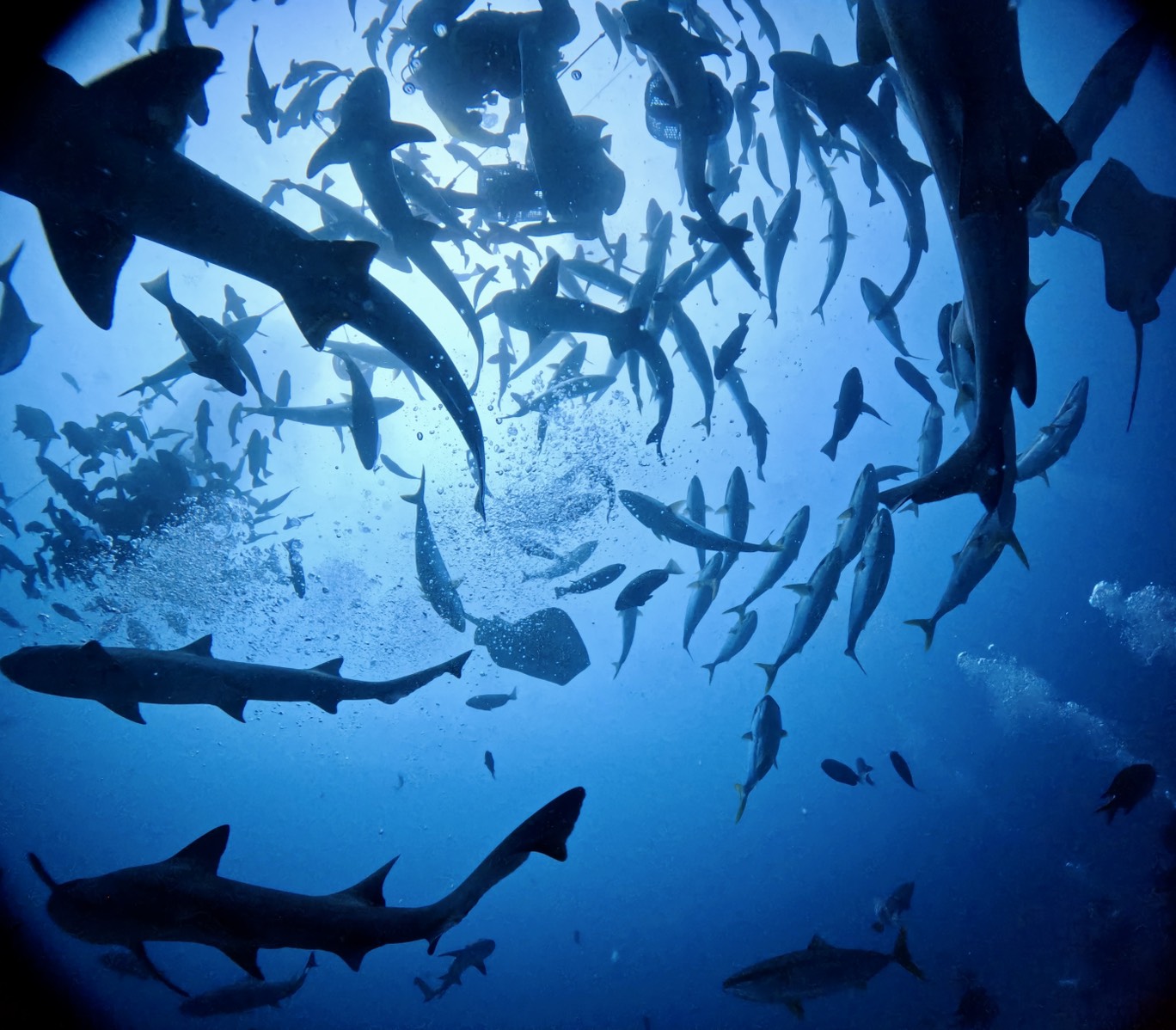 サメもエイも、ダイバーが吐いた泡を浴びに遊びに来てくれることも(*’▽’)
