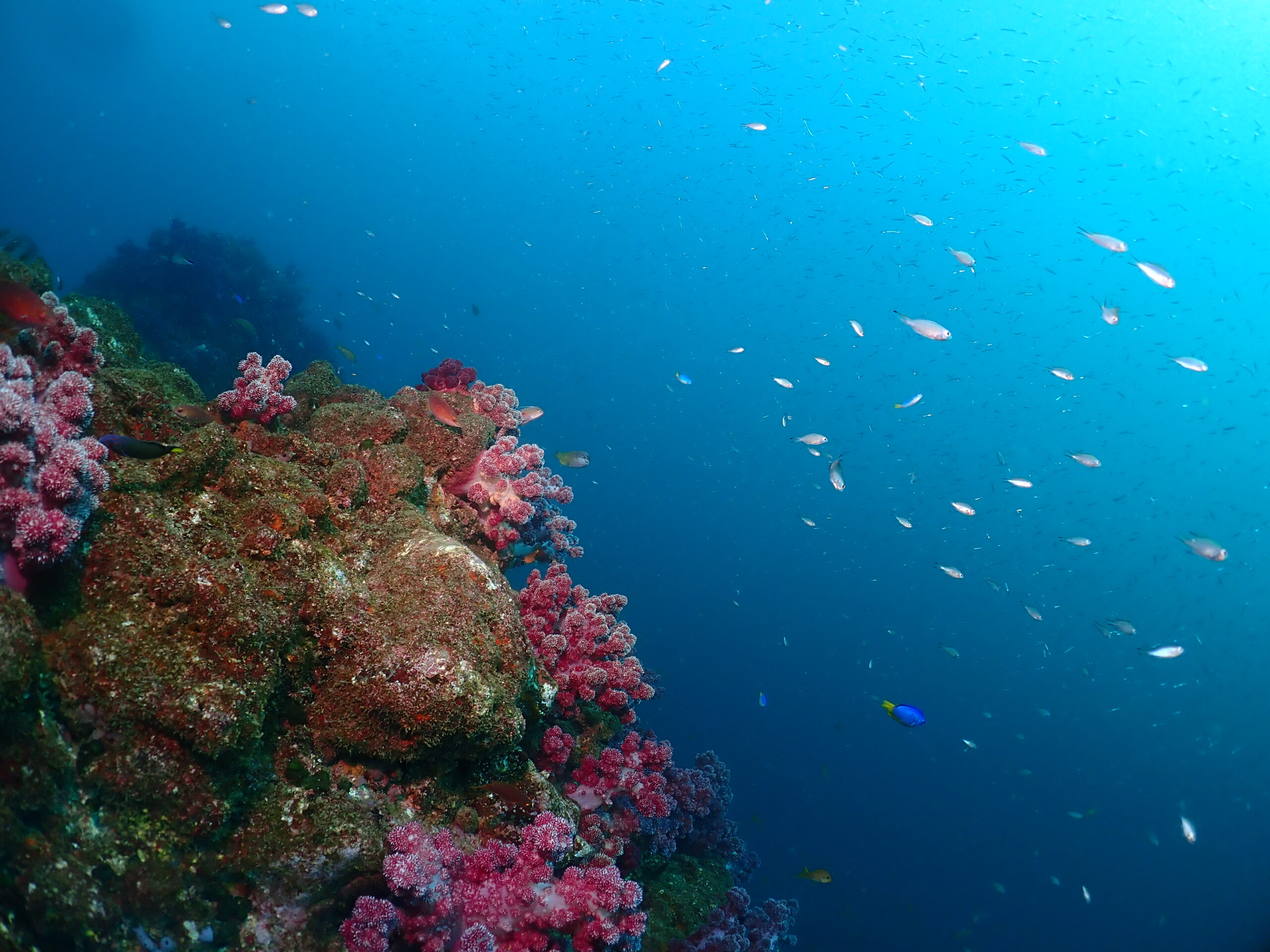 透視度が上がり始め、地形とソフトコーラルがより映えるベストシーズン。