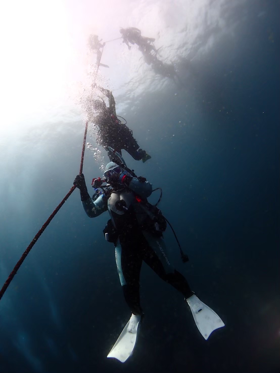 ダイビング中の視界が広がり、静かな海で地形と魚影をじっくりと楽しむことができます。