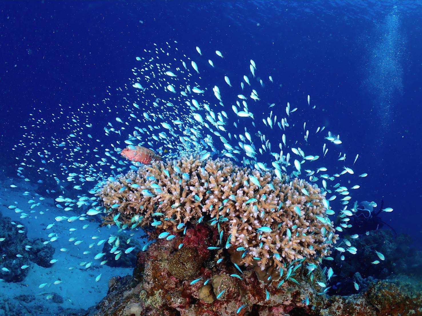 スカシテンジクダイがたくさん群れていたり、デバスズメダイがいっぱい泳いでいたり。