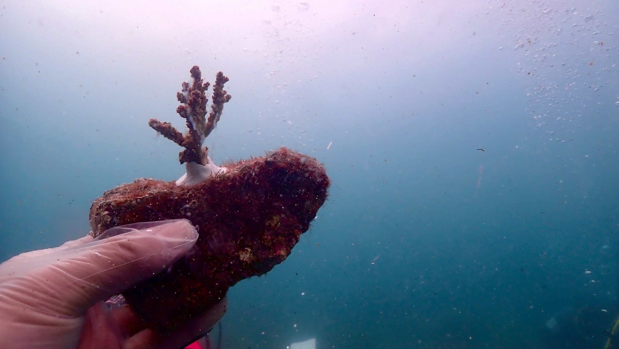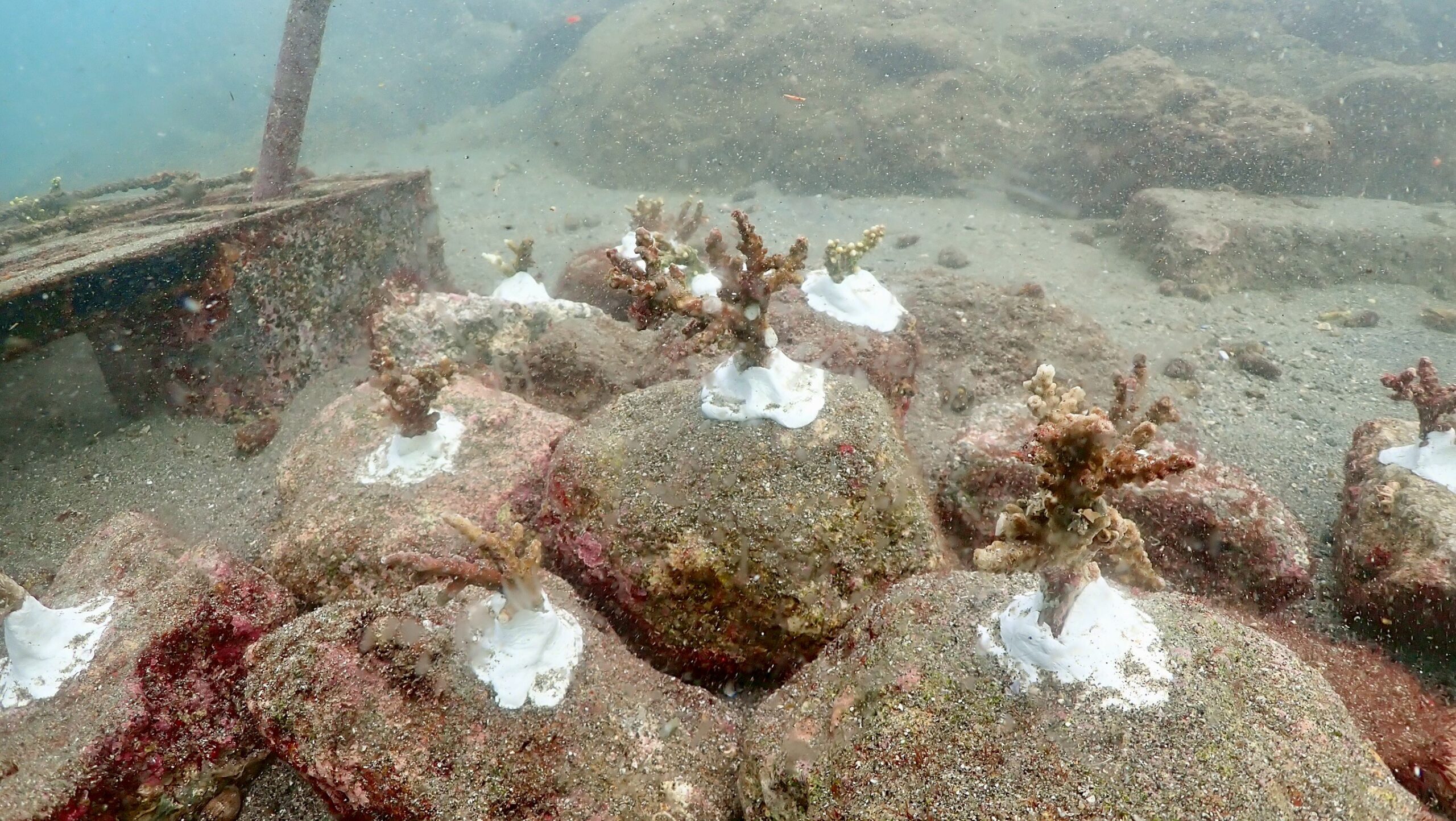 岩場の上に固定されることで、水底に落ちてしまったサンゴの命をつなげることが出来るんですね!