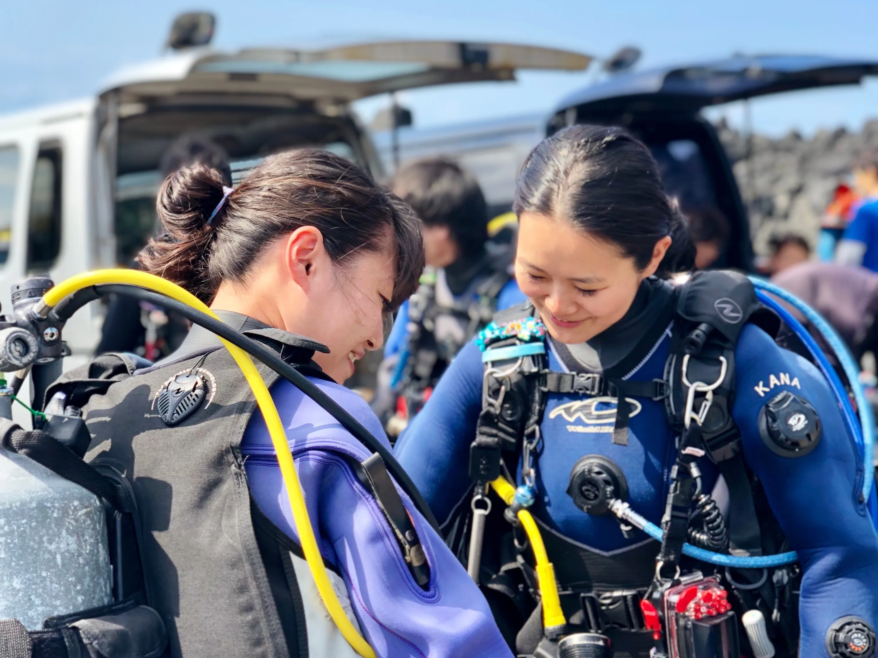選びきれないくらいどのダイビングもとっても楽しかったのですが、初めて潜ったオープン・ウォーターの海洋講習の海と、ライセンスを取得してから初めて船に乗り、伊豆大島へ行ったダイビングが思い出に残っています。オープン・ウォーターの時はものすごく緊張していましたが、初めて潜った海は感動的でずっと潜っていたかったです。伊豆大島では、私の大好きなウミガメちゃんに出会う事が出来てとても幸せでした!