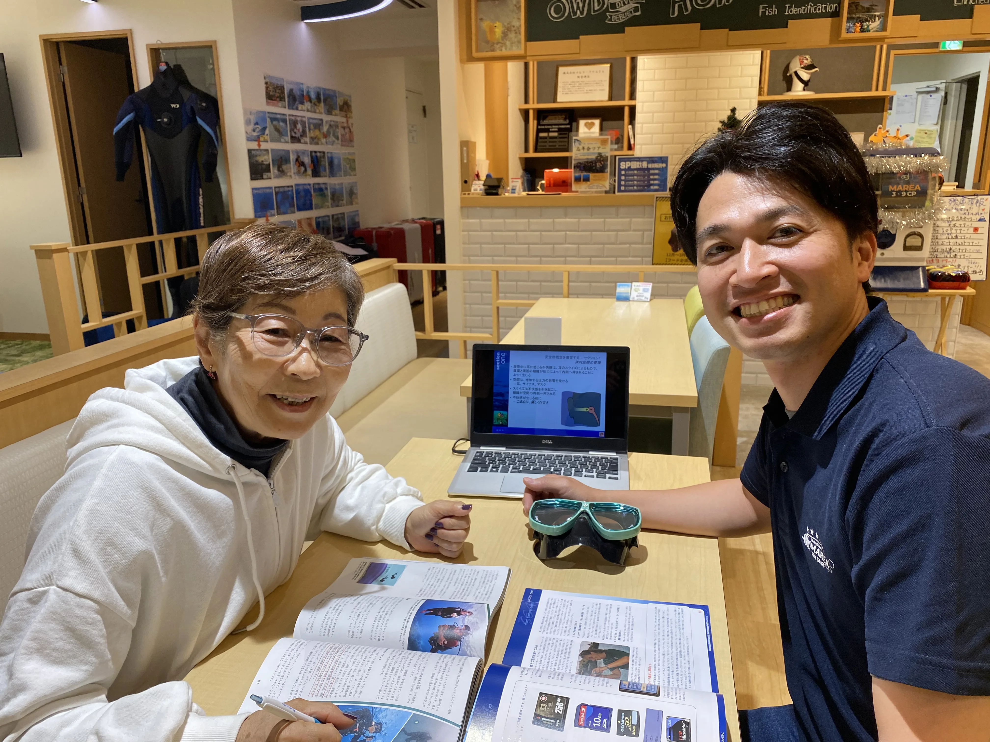 初めてのダイビングは、ワクワクする気持ちと同時に不安も多いものだと思います。しかし、マレア東京店では、安心して学んでいただけるよう、講習開始前にインストラクターがマンツーマンでカウンセリングを行います。このカウンセリングでは、年齢や体力、経験に応じて、個別に最適な講習プランを提案しており、ご自身のペースで進められるよう配慮しています。