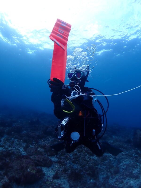 初日の富戸では3人ともDSMB(マーカーブイSP)を実施!