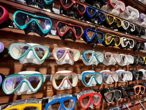 すんごい数のマスクとフィン!!今年の新作カラーもちらほら
