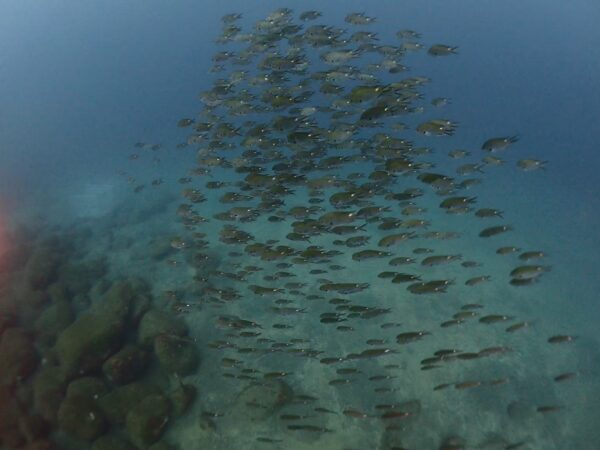 タカベ、イサキ、スズメダイなどの大群が縦横無尽に泳ぎ、夏に産まれた幼魚も成長し、至る所で観察が出来ます!