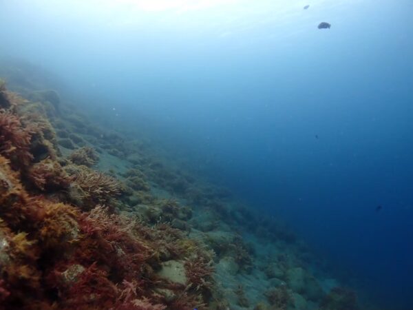 ホンダワラは光合成の為に浅場での成長が観察できるのですが、その先は傾斜が生まれ水深がどんどん深くなりホンダワラはなくなります。そのため、ホンダワラアーチを抜けた先は済んだ水中世界を堪能できます♪