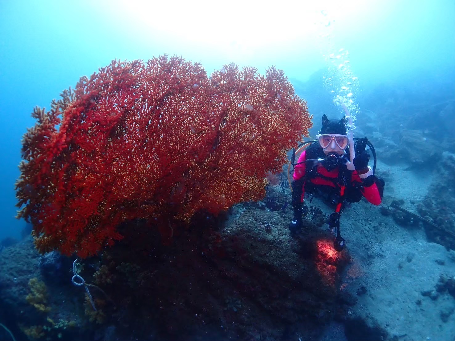 かっちゃまの海は、穏やかなポイントが多くて“はじめてのボートダイビングにも最適”なコンディションです。初心者でも安心してステップアップできる反面、水深やドロップオフなどの地形変化もあるので、中級・上級者のスキルアップにもぴったりです。