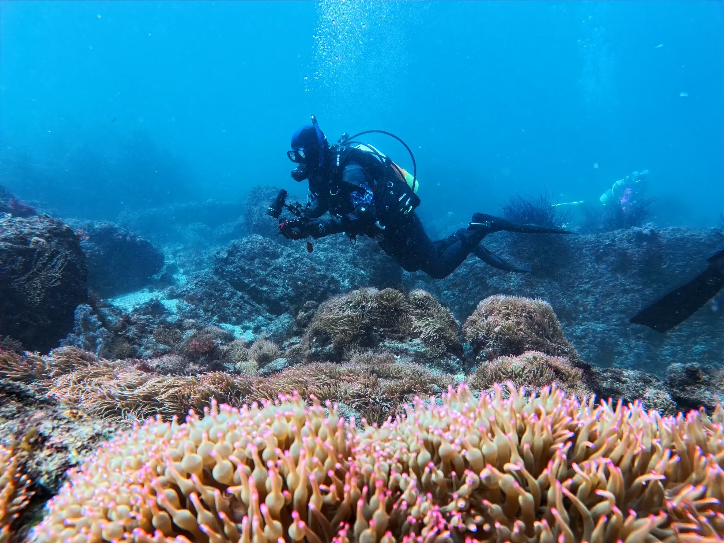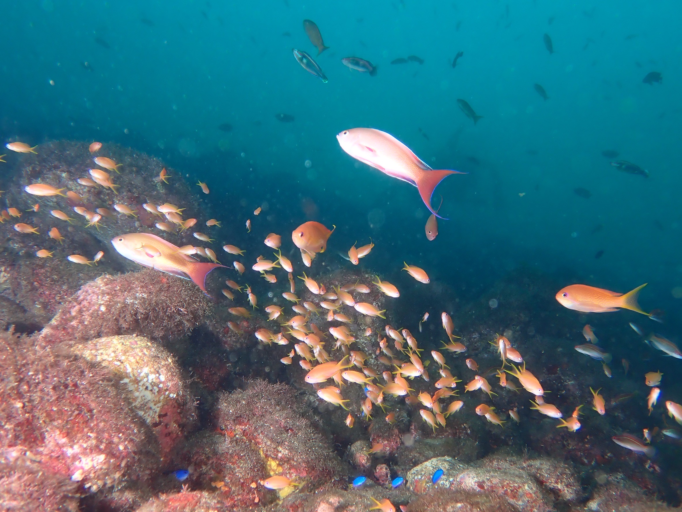 かっちゃまのボートポイントは、陸からは行きづらいエリアならではの豊かな水中世界が魅力です。ボートで沖に出ることで、水深のあるポイントや複雑な地形にアクセスでき、群れやマクロ生物、珍しい生きものとの出会いのチャンスが格段に増えます。