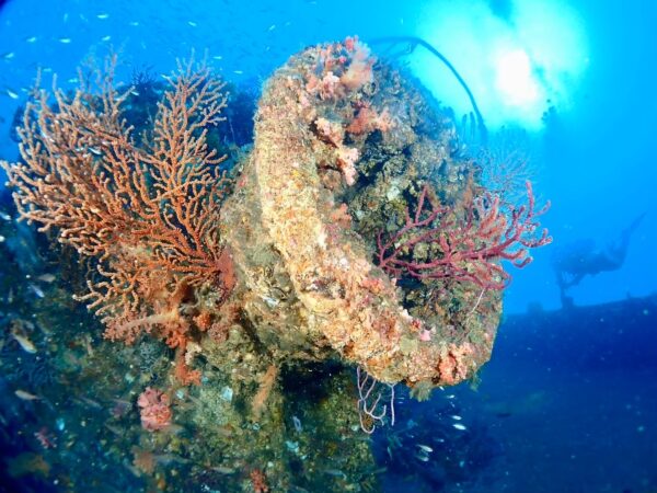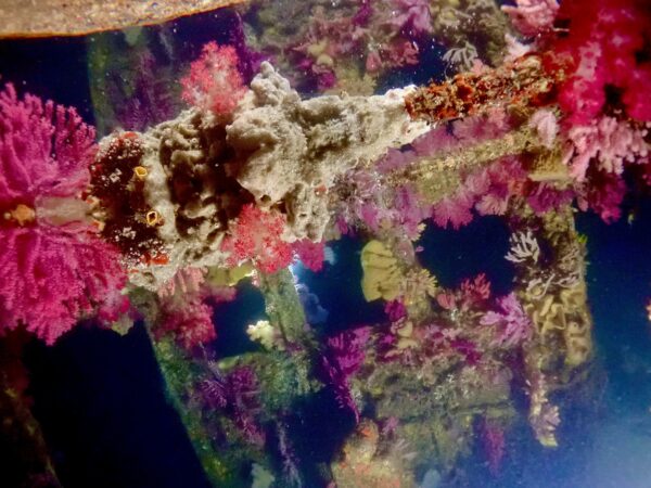 ボートポイントでは、砂地に佇む沈没船にソフトコーラルが群生しており、多様な生物観察も楽しむ事が出来ます!