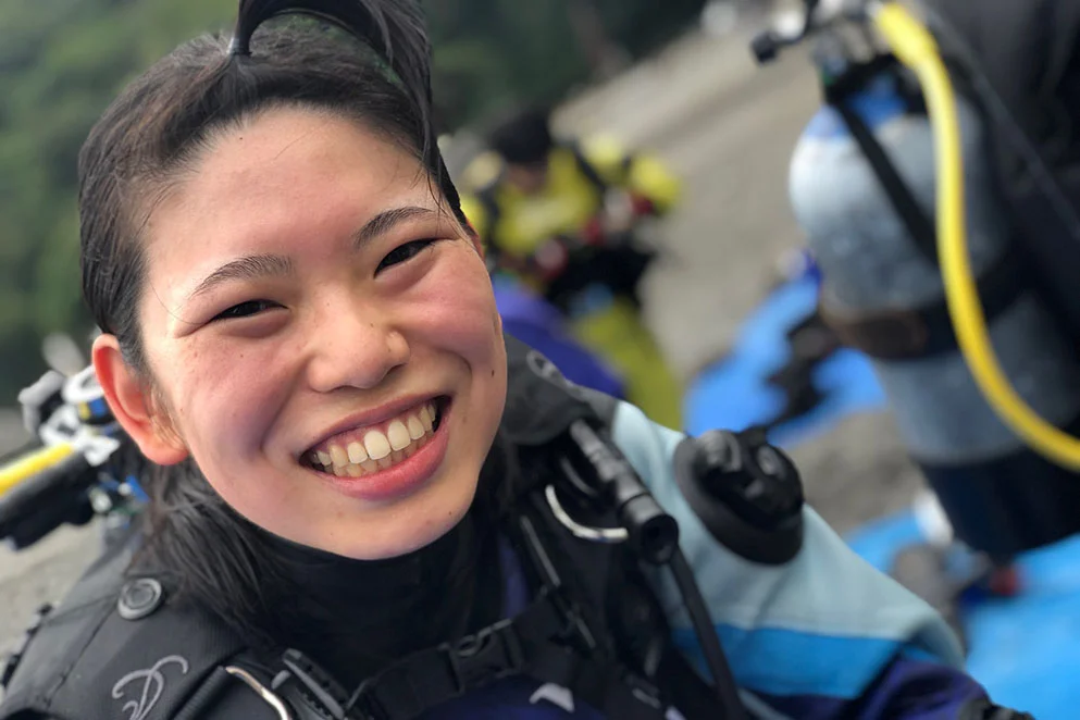 初めて海へ潜った日はこんなに近くで魚を見られたのと、海の中で呼吸できたことに凄くワクワクしたのを覚えています。アドバンスの海洋講習ではオープンウォーターのときより慣れてきたので、ナイトダイビングや写真の講習でたくさんの魚を見つけることができ、楽しかったです。